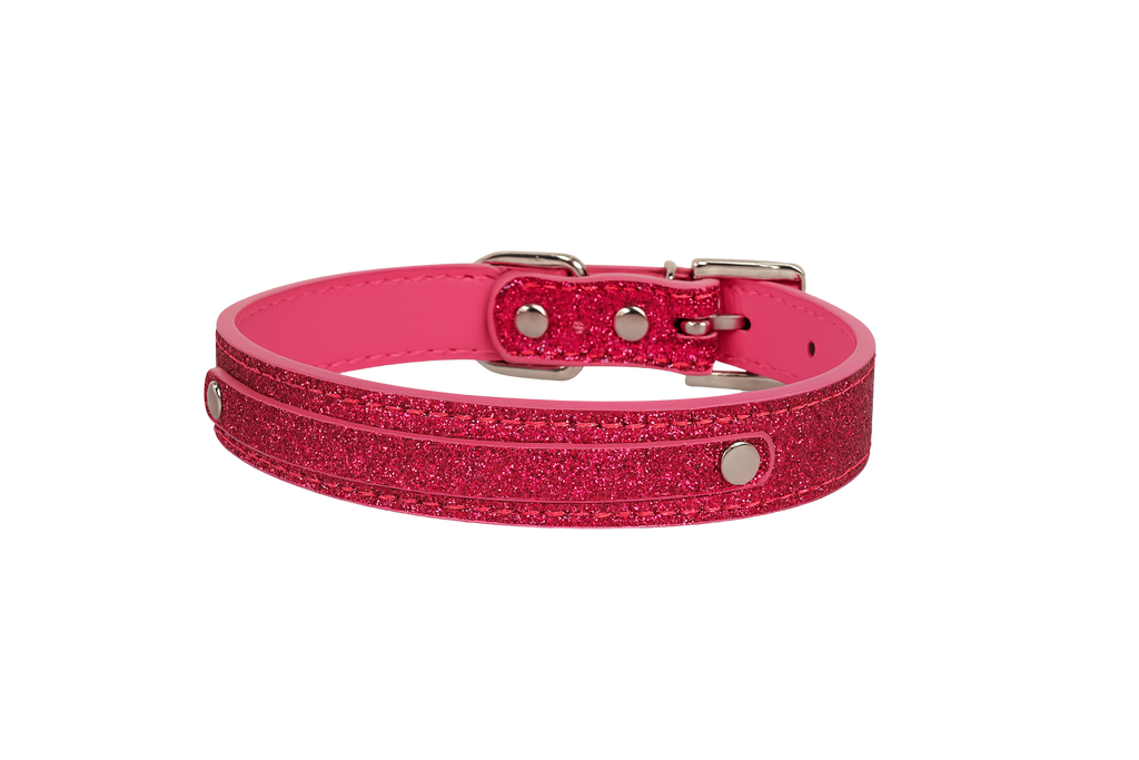 Add a touch of glamour to your pet’s look with this Glitter Hot Pink Dog Collar. Designed for style and comfort, this collar features a sparkling gold finish that stands out beautifully against any fur color. Made with durable materials and a secure buckle closure, it ensures safety while keeping your pet fashionable. Perfect for everyday wear or special occasions, this collar is also charm-friendly, allowing you to personalize it with cute pendants or your pet’s name.