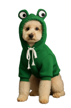 Bring out your pup's fun personality with this adorable frog-themed hoodie! Made from soft, breathable fabric, this hoodie combines comfort and cuteness in one. The playful frog eyes on the hood add a charming touch, while the adjustable drawstring ensures a snug and secure fit.