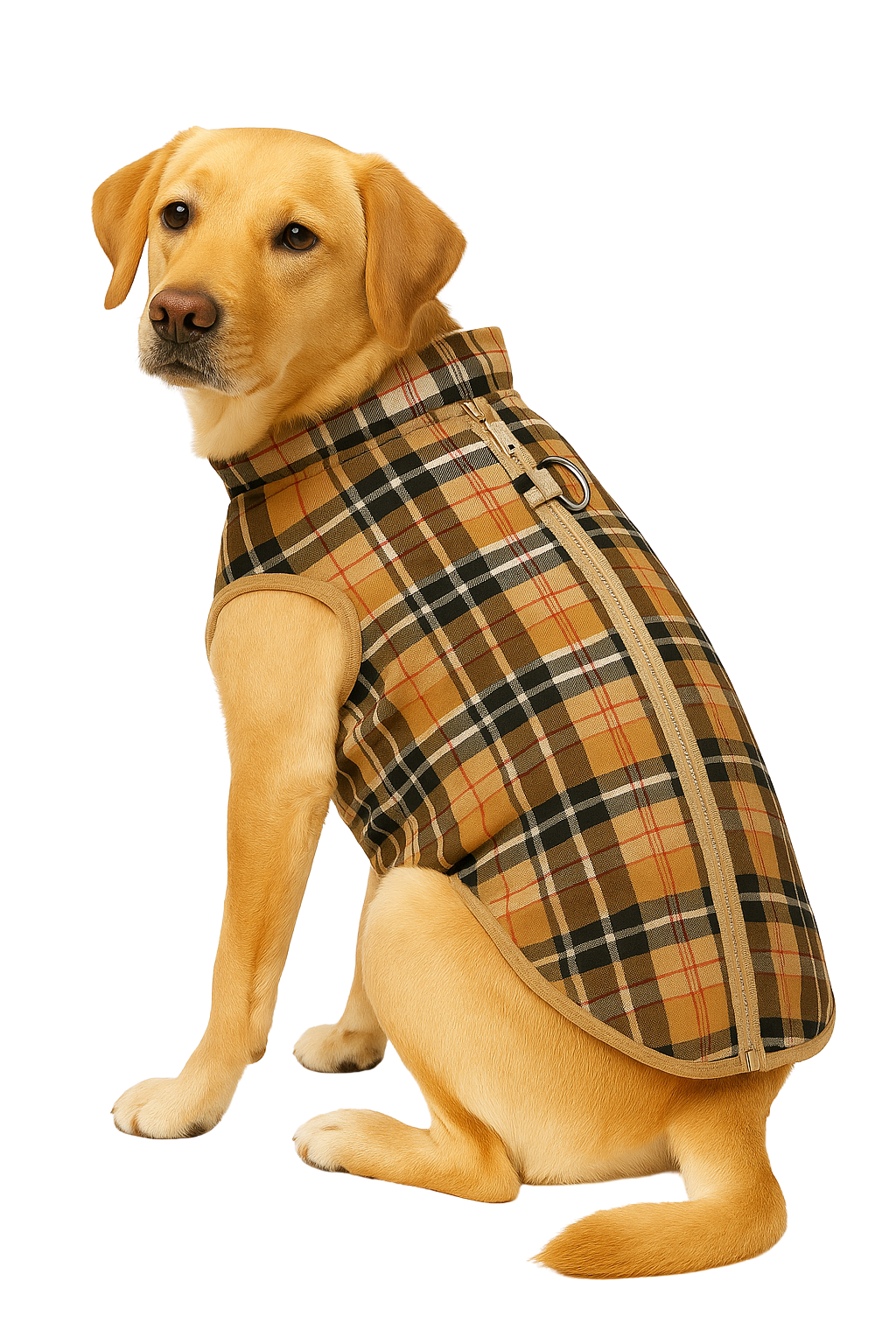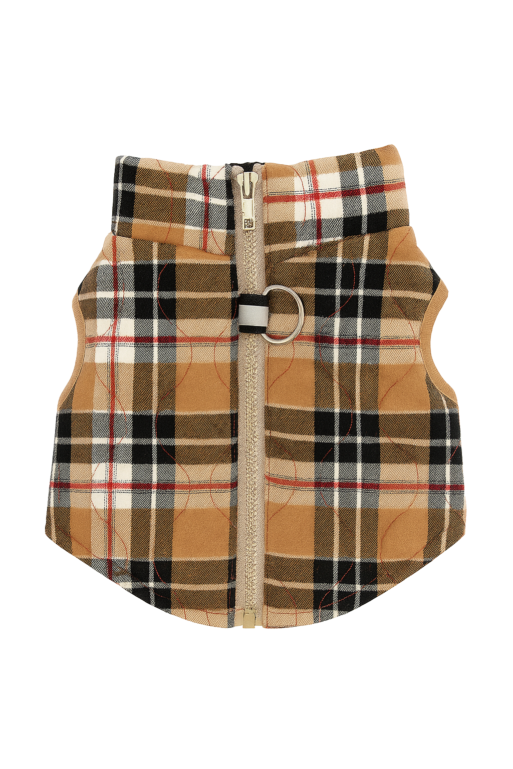 Give your pet a touch of elegance and comfort with this stylish plaid dog vest. Designed with a classic beige, black, and red checkered pattern, it’s perfect for daily walks or special outings. The front zipper closure makes it easy to put on and take off, while the built-in D-ring allows you to attach a leash directly, combining style and practicality.