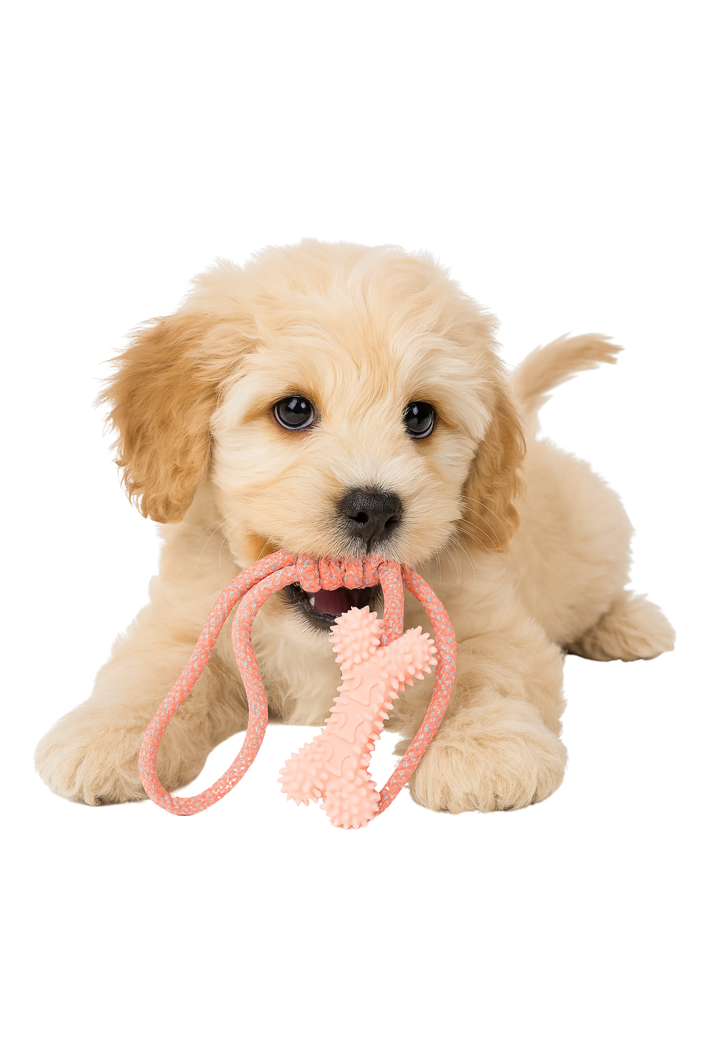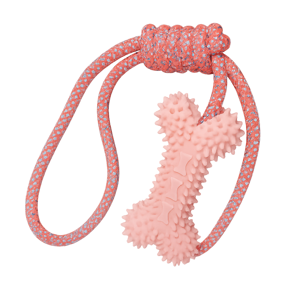 Keep your pup active and entertained with this durable rope and bone chew toy, specially designed for endless playtime and chewing fun. The textured rubber bone gently massages gums and helps promote dental health, while the strong rope is perfect for tug-of-war, fetching, and interactive bonding with your dog.